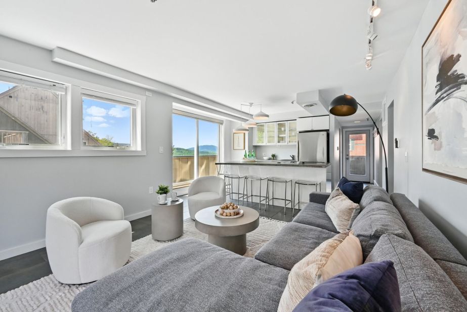Experience mountain living in the heart of Carrabassett Valley with this stylish and efficient 2-bedroom, 1-bathroom Village Center condo. Located just steps from Sugarloaf, this 650 sq. ft. unit features a stunning modern kitchen with stainless steel appliances and sleek concrete countertops, perfect for après-ski entertaining. Completely furnished with new furniture that fits every space perfectly. Step outside onto your private west-facing deck and soak in panoramic sunset views, or use your south facing deck area for amazing mountain views from your chairlft bench —rare and beautiful bonuses. Short walks to all restaurants, shops, and ski trails. This is a once in a lifetime opportunity to have a condo in the MOST prime location on the mountain!! True destination condo.