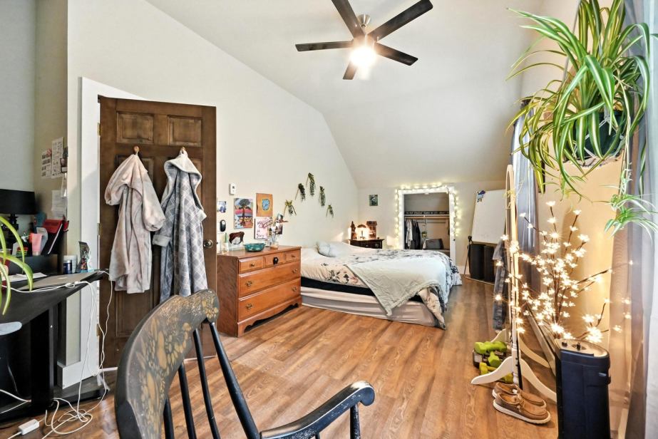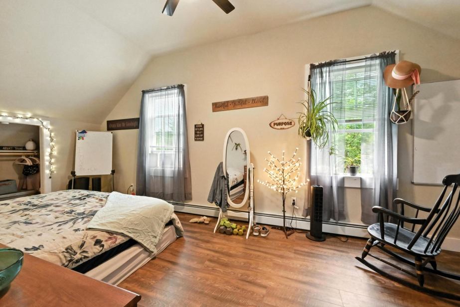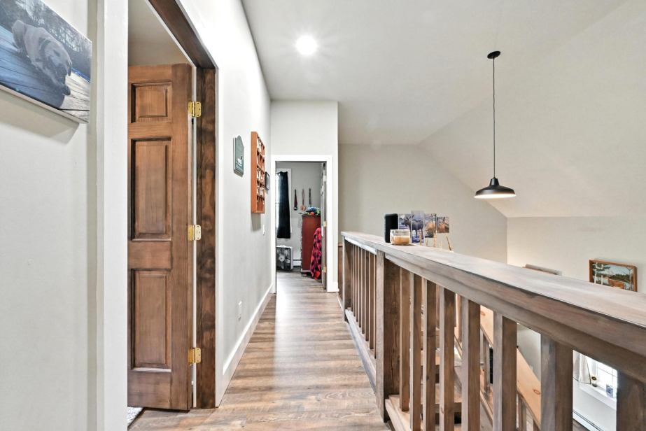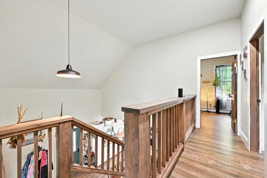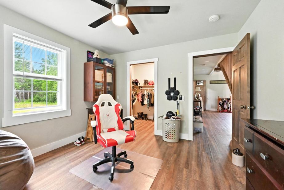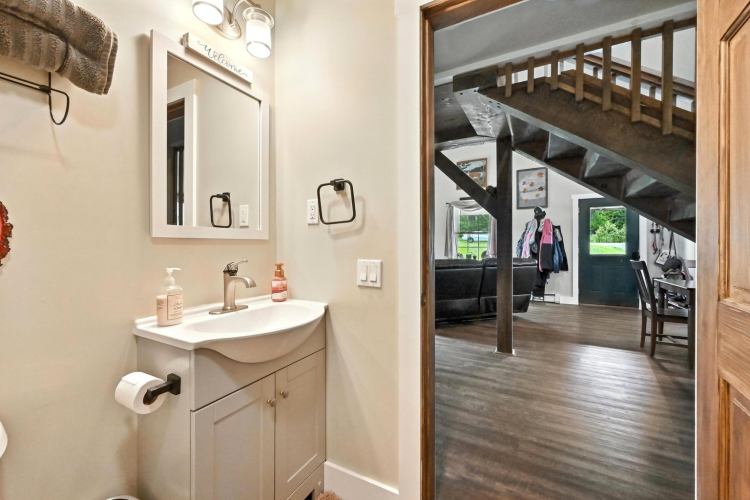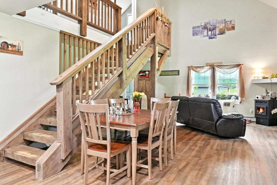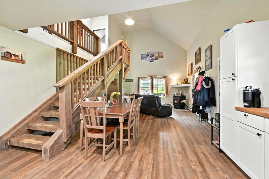 Built just a few years ago, the home has been lightly used and well maintained. Step inside to a spacious open-concept living area featuring cathedral ceilings and a beautiful wood staircase that adds to the home’s warm, country appeal. The first floor includes a convenient bedroom and full bath, while the second floor offers two additional bedrooms and another full bath—ideal for hosting guests or creating your own work-from-home space.
