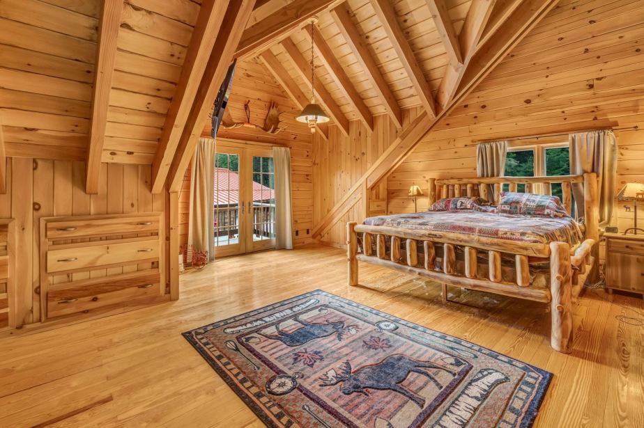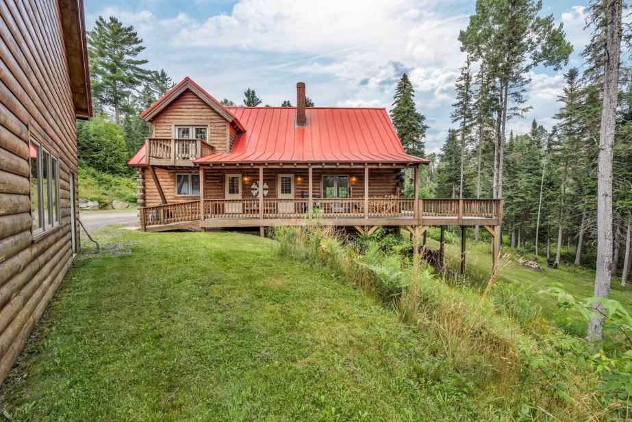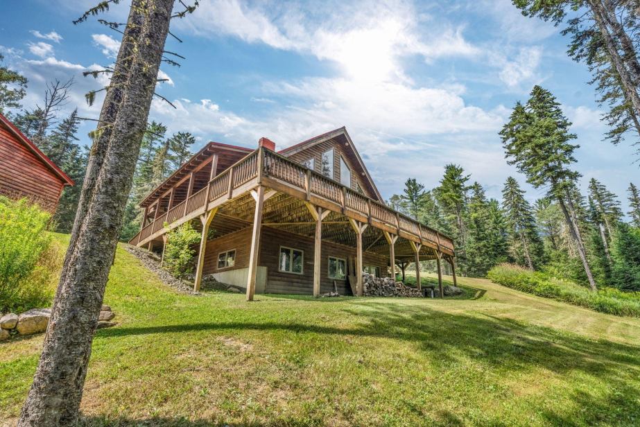 Nestled in the heart of Rangeley, Maine, this exquisite chalet-style residence is a harmonious blend of rustic charm and modern comfort. As you approach via the private winding driveway, you’ll cross a picturesque bridge over a babbling, year-round brook, setting the tone for the serene retreat that awaits. The log-sided exterior enhances the mountain lodge aesthetic, while expansive windows offer panoramic views of the surrounding natural beauty. Inside, the grand cathedral ceilings, supported by striking timber framing and iron brackets, create a welcoming timber lodge atmosphere. At the heart of the home, a massive stone fireplace brings warmth and ambiance, making every gathering or quiet evening unforgettable. The open-concept kitchen and living area is designed for both functionality and style, featuring granite countertops, a convenient bar area, and stainless steel appliances. With 3,233 square feet of living space, this home provides ample room for relaxation and entertainment. It offers two bedrooms and three bathrooms, including a master suite loft with a private bath, glass French doors, and a personal balcony—perfect for morning coffee or stargazing under the night sky. Imagine lying in bed with the doors open, letting the sounds and scents of nature drift in. Full basement w’living area, 2nd bar, and gym. One-floor living is an option, ensuring accessibility and convenience. For added flexibility, the detached 3-car garage is a standout feature. Overbuilt and fully equipped, it provides endless possibilities—whether for hobbies, storage, or even converting into additional living space. Outdoor enthusiasts will love the direct snowmobile and ATV access. This is a rare opportunity to own a distinctive property in an idyllic location, offering unmatched amenities and charm at an exceptional value.