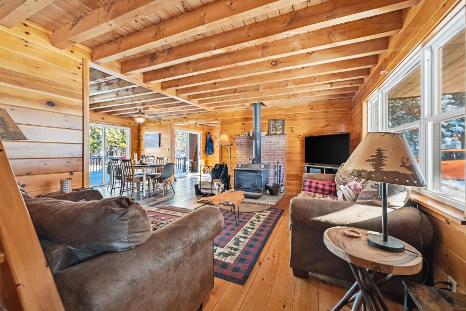 With over 1,500 sq. ft. of comfortable living space, the home features a cozy cabin atmosphere ideal for year-round living or a Maine getaway. The spacious attached garage with full storage above provides plenty of room for gear, tools, or potential workshop space.