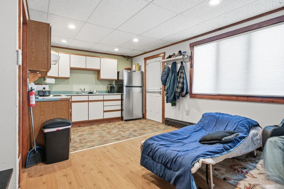 The main level offers approximately 1,825 square feet of finished commercial space, well suited for retail, office, café, or mixed-use business ventures. And a fully remodeled 1 bedroom owner apt that is sleek, modern, and very tastefully furnished. Above, the second floor, features two apartments that share a screened porch overlooking town, with seasonal views of Rangeley Town Cove, providing excellent rental or owner-occupied income opportunities.