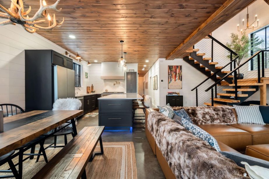 The open-concept main living area is filled with natural light and perfectly positioned to capture the surrounding views. The kitchen is a true showpiece, featuring top-of-the-line appliances, custom cabinetry, premium countertops, and carefully selected designer light fixtures. High-end finishes extend throughout the home, including beautifully appointed bathrooms and a spacious main-level primary suite. The hot tub is located perfectly to catch sunsets at the end of the day as you unwind from hours of recreation.