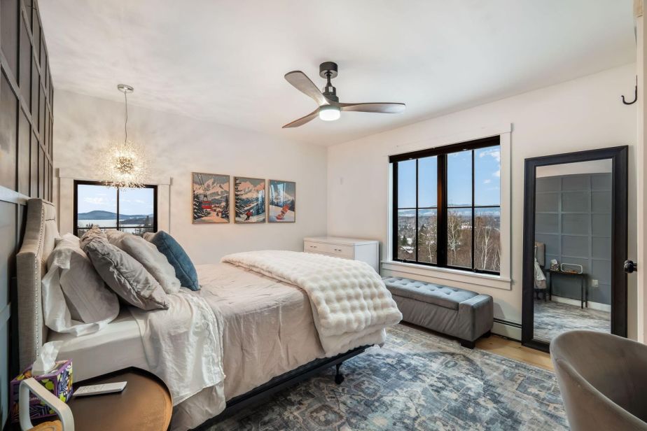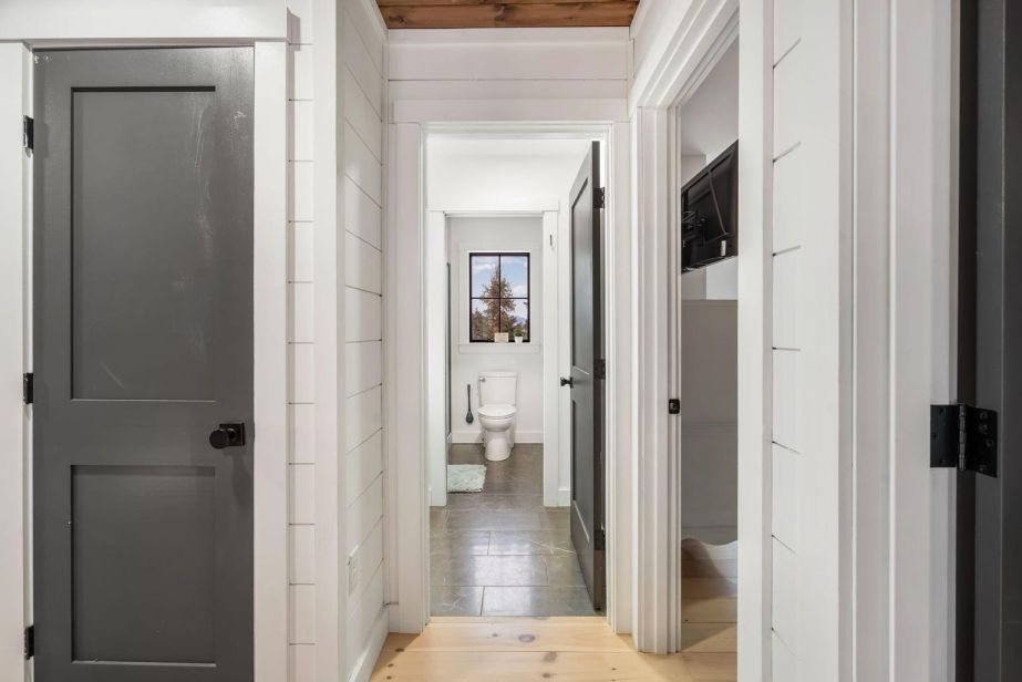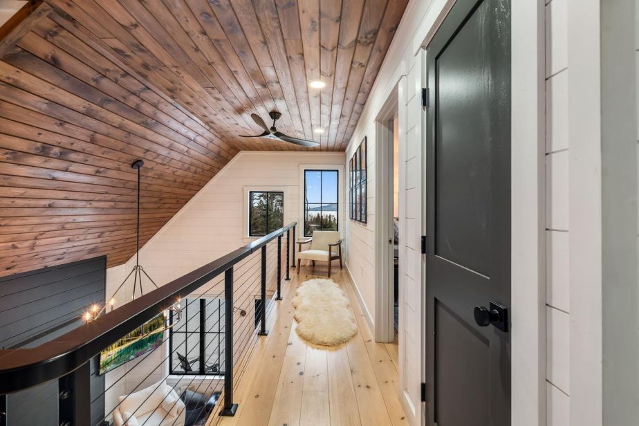 Large windows frame the ever-changing landscape, allowing you to enjoy lake vistas and sweeping mountain scenery from multiple rooms. Quality construction and materials ensure year-round comfort, while the home’s exterior blends seamlessly with its natural surroundings.
