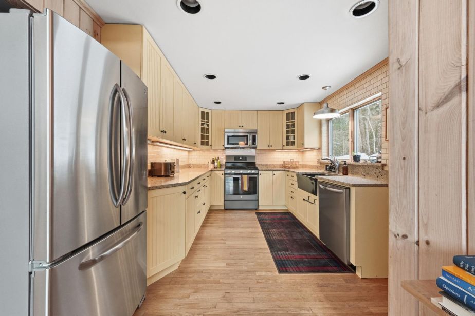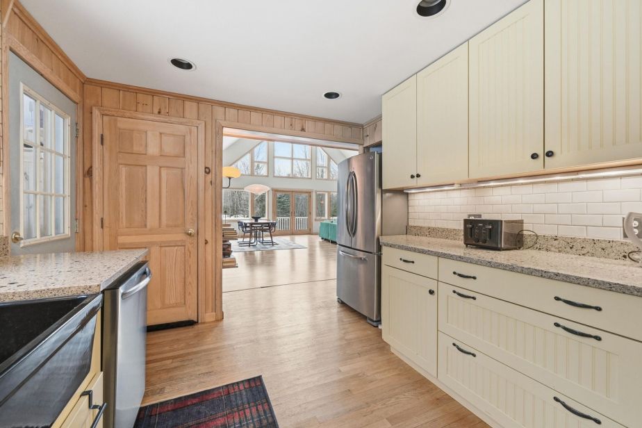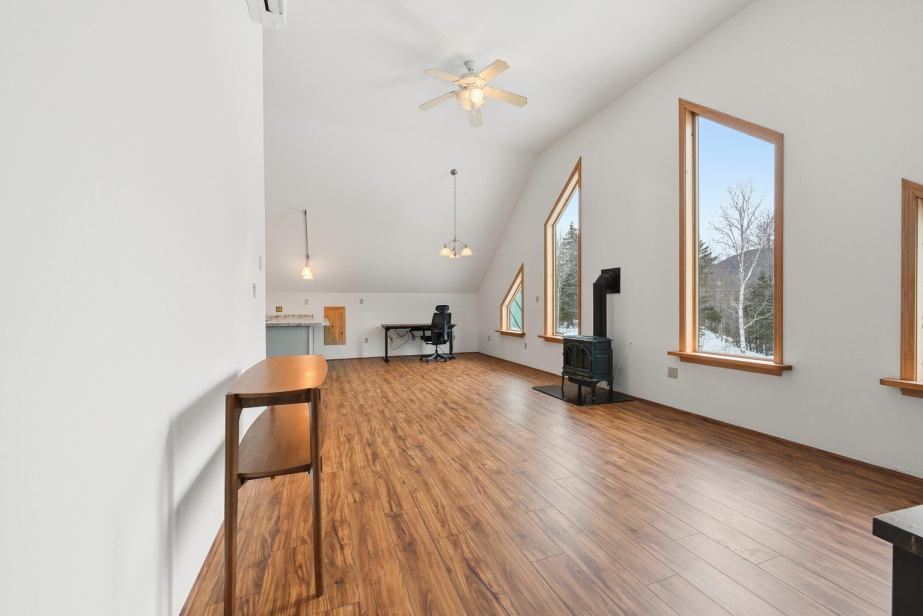 The oversized garage provides ample space for snowmobiles, skis, bikes, and all your four-season gear. A tiled mudroom entry, large deck for taking in the views, and generous storage throughout make mountain living easy and functional.