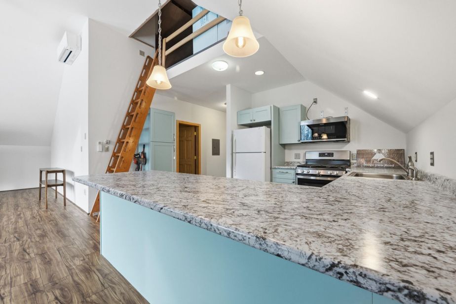 With four bedrooms spread across multiple levels, there’s room for everyone. A separate living space over the garage offers added flexibility for guests, extended family, or rental potential, complete with its own bedroom area, bath, and parlor stove for added charm and privacy.
